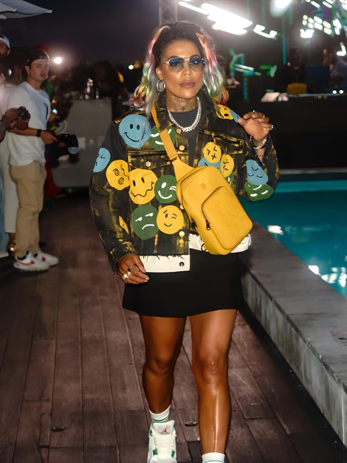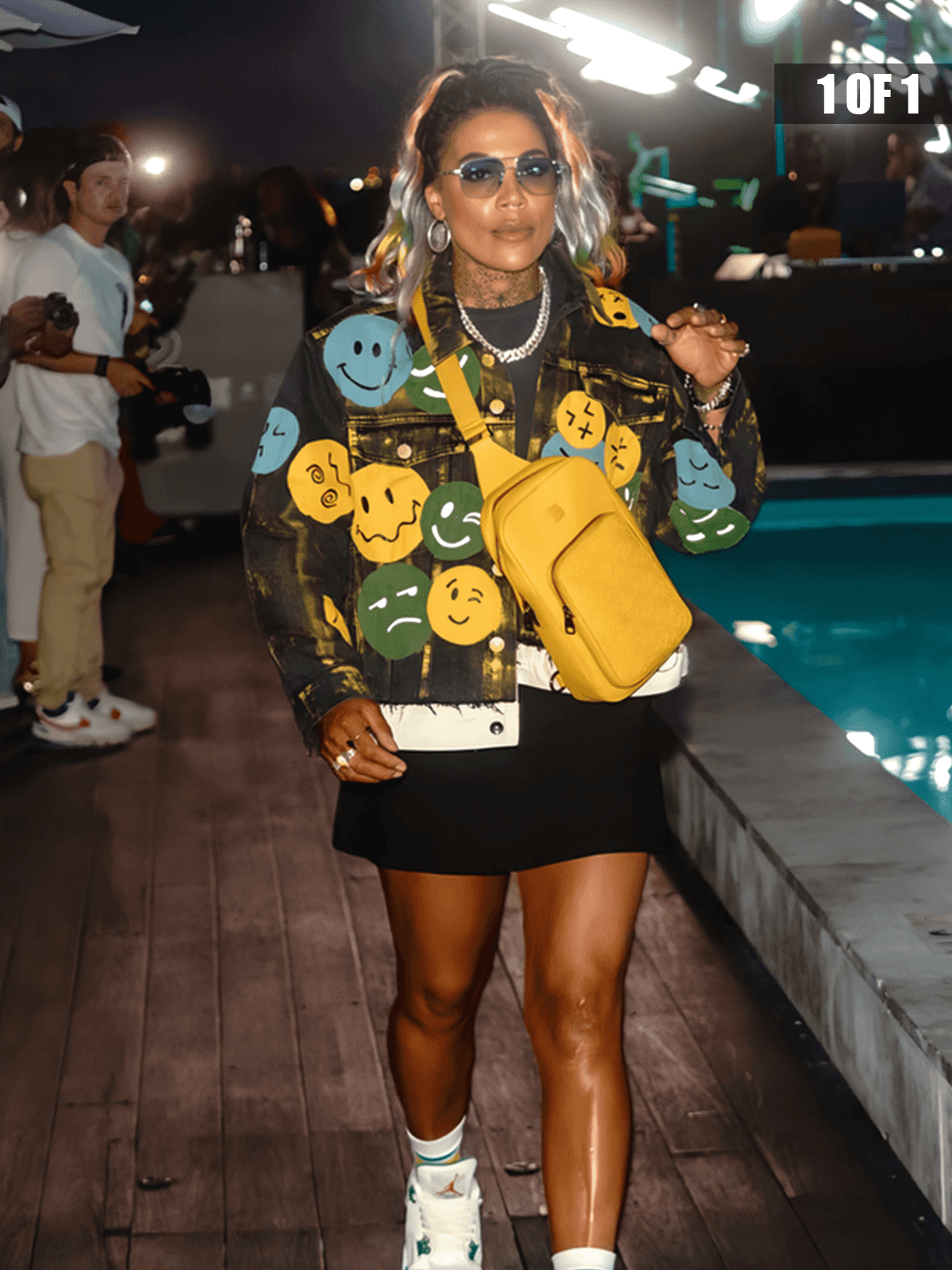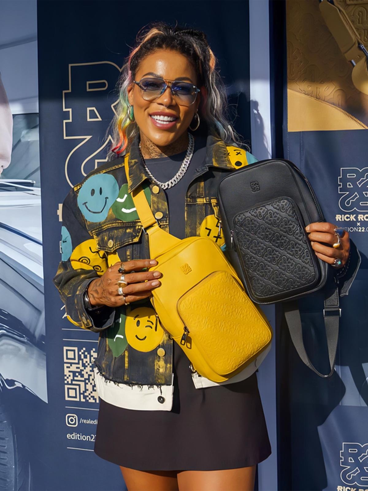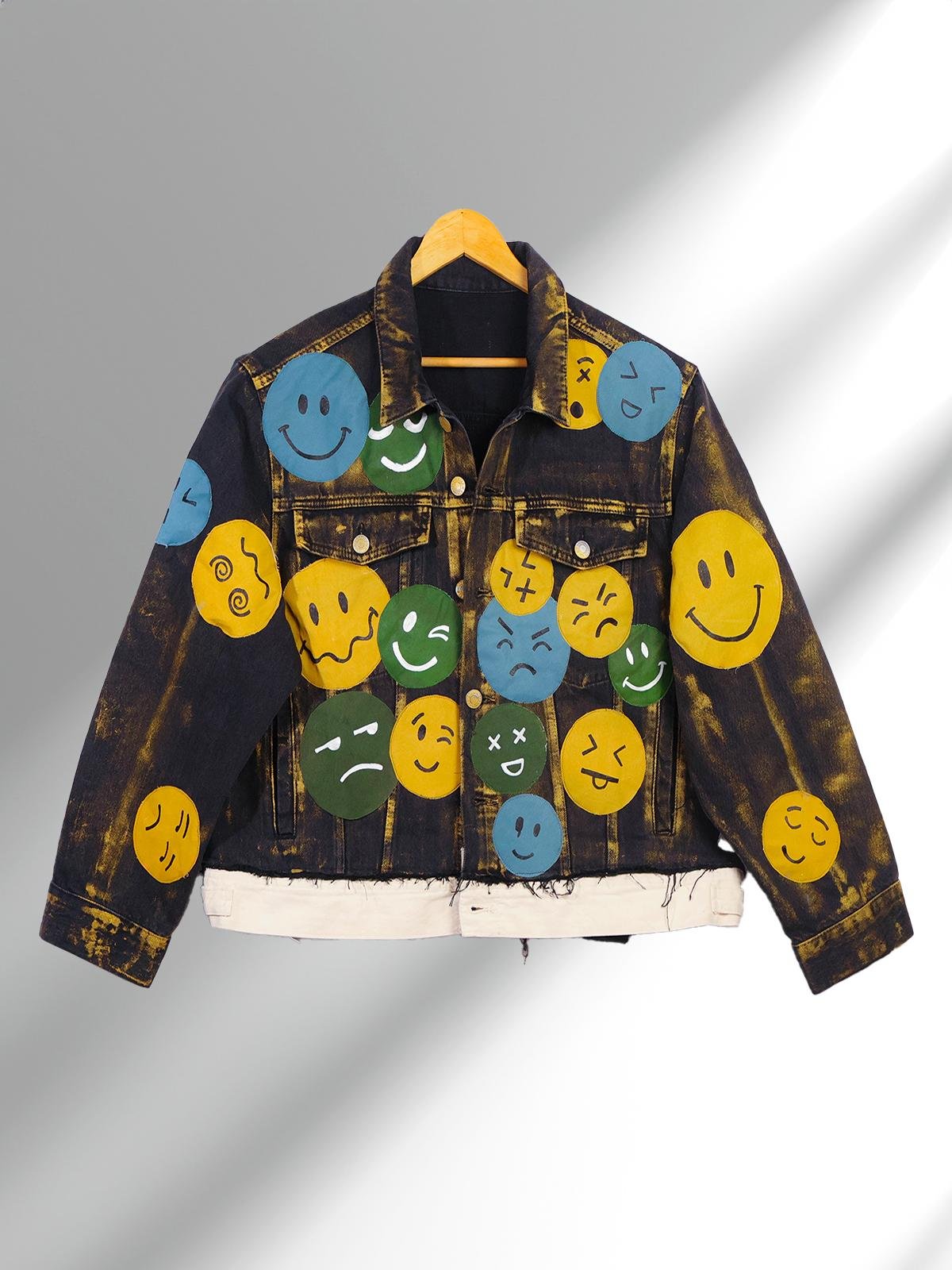 From OCD straight to the red carpet in Miami, this reworked denim jacket was designed for the exclusive Rick Ross x E22 runway drop. Bathed in rich golden tones and stamped with the bold RR22 emblem, it features hand-painted emojis and Hustler type for that loud, unapologetic energy. High fashion meets raw street spirit in this one-of-a-kind collectible.