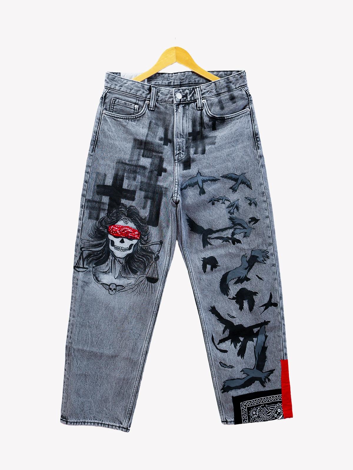 Each piece is made to order. The images shown serve as references to showcase the artwork. Variations in fabric colour tone, artwork, fabric texture, pocket shapes, and stitching will occur due to the custom and handmade nature of our clothing.